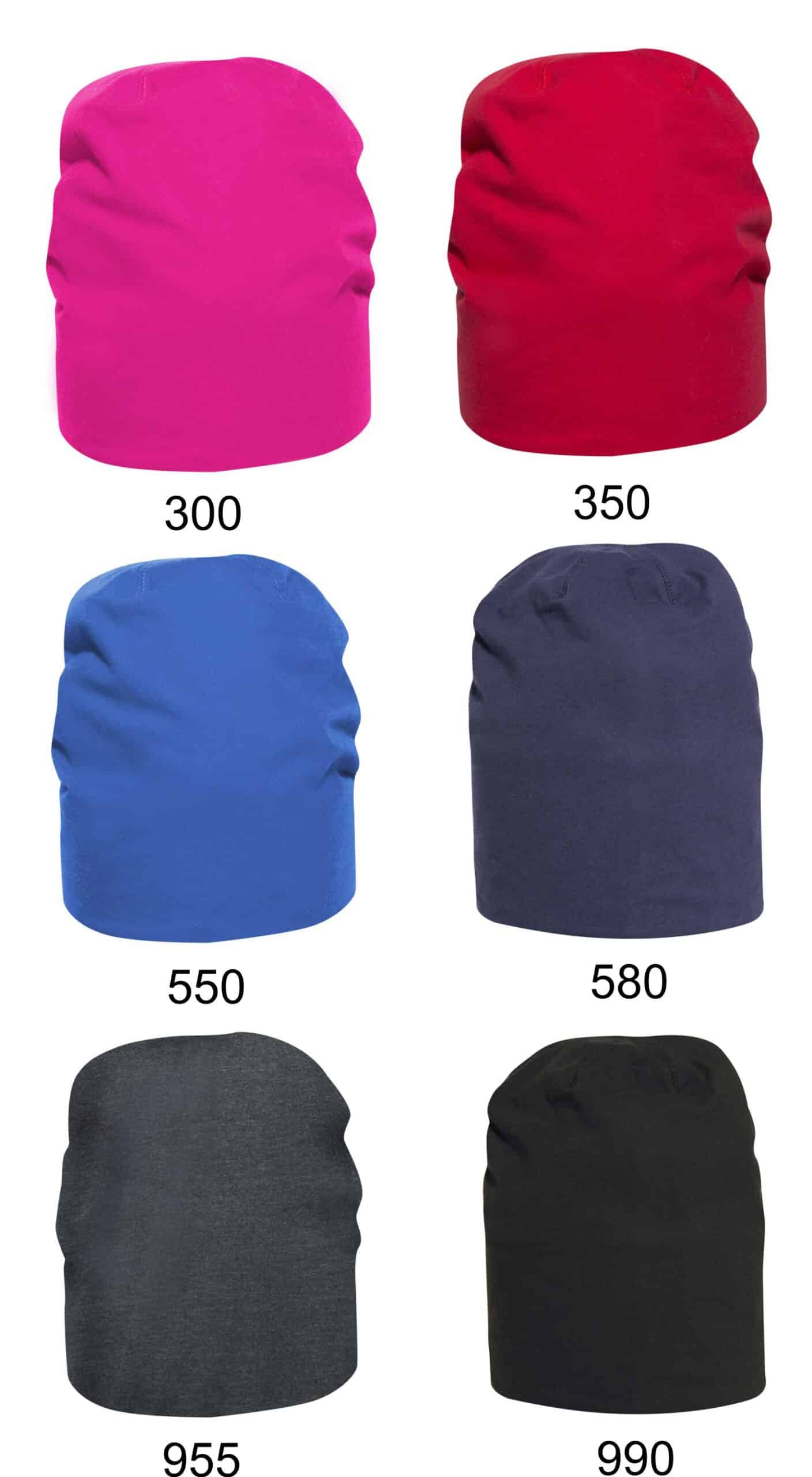 Kaksinkertainen single jersey pipo jossa flatlock saumat.